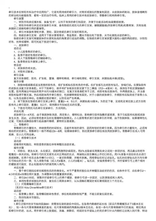 一、牵引技术的种类常用的骨科牵引技术包括骨直牵引、皮牵引及骨内牵引。