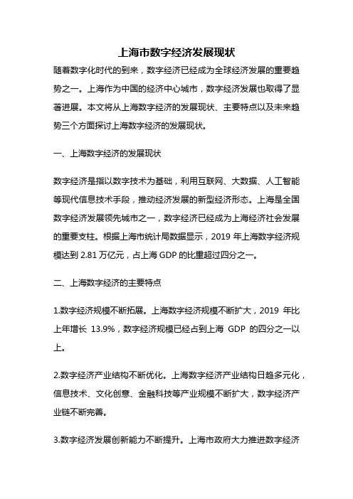 二、上海的发展特点上海作为中国的一线城市,经济发展迅速,对外开放程度高。