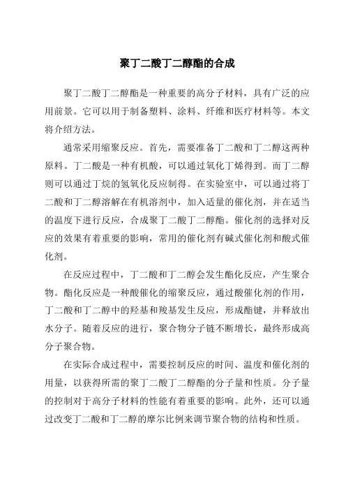聚丁二酸丁二醇酯的合成聚丁二酸丁二醇酯是一种重要的高分子材料,具有广泛的应用前景。