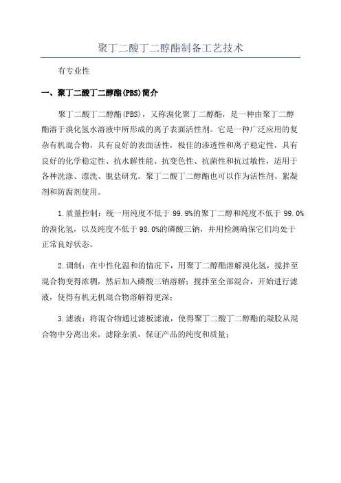 二、工作原理PBS是以丁二酸、丁二醇为主要原料,通过聚合反应形成的。