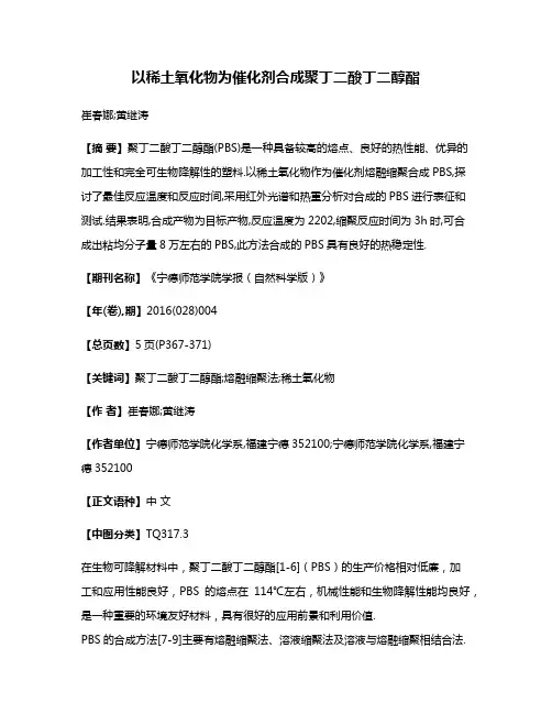 本科生学年论文题目聚丁二酸丁二醇酯的合成研究学生姓名刘朋坤所在院系化学化工系专业班级化学工程与工艺学号 2010223334 指导教师(职称)寇莹日期 2012年 5 月日聚丁二酸丁二醇酯的合成研究摘要:以丁二酸与丁二醇为原料,通过熔融缩聚法合成聚丁二酸丁二醇酯。