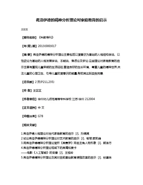 弗洛伊德的精神分析理论对家庭教育的启示西格蒙德·弗洛伊德是奥地利著名的精神病学家,“精神分析”的创始人,现代心理学的奠基人。
