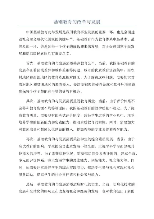 基础教育改革与发展随着社会的不断进步和发展,基础教育改革已经成为了一个备受关注的话题。