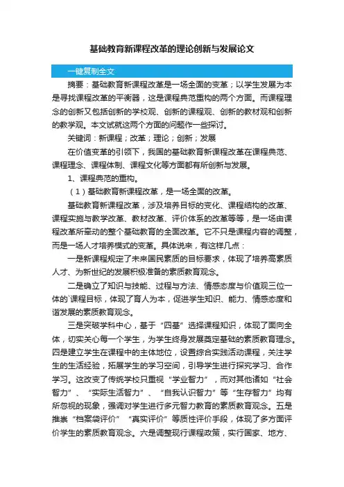 基础教育改革与发展论文