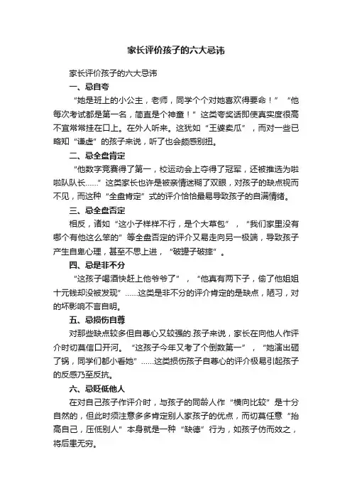 *表扬孩子注意不要犯这四个禁忌:禁忌一:好话坏说,明褒暗贬*父母口头禅:你今天终于没有做错,了不起!全部做好了,很好。