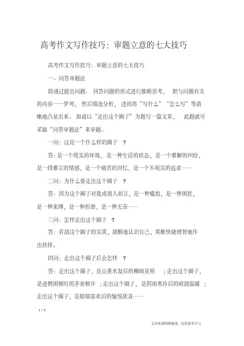 高考作文审题立意七种技巧技巧1:关键词句入手法。