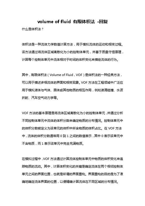 volume of fluid 有限体积法-回复什么是体积法?体积法是一种流体力学数值计算方法,用于模拟流体的运动和相变过程。