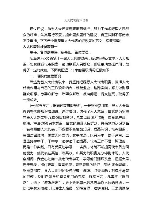 关于《我国的人民代表大会制度》市级公开课评课记录评课时间:2015年11月27日上午10:30-11:40地点:兴化文正实验学校高中部会议室评课活动主持人:唐兴杰(市教育局)听课人:唐兴杰(市教育局)苏跃(兴中)张春风(兴中)高守春(楚水高中)王马龙(楚水高中)王燕(楚水高中)郑读才(周庄高中)周优春(安丰高中)林扣华(戴南高中)张仕巧(文正高中)陈艳(文正高中)钱松杰(文正高中)评课人:张春风(兴中)王马龙(楚水高中)高守春(楚水高中)陈艳(文正高中)评课过程:唐兴杰(市教育局):今天我们相聚在兴化文正学校,参加了文正学校孙云芹老师的高三复习课《我国的人民代表大会制度》公开课,下面我们对本节课进行点评,首先请执教老师孙云芹介绍本节课的设计思路:孙云芹(文正高中):感谢各位领导、专家老师莅临指导我的课堂,下面我从两个方面谈谈我这节课的设计思路:1、总体设计理念:从学生已有的生活经验出发,通过观看时政视频录像、分析探究、学生讨论等活动,架设与教材的桥梁,引导学生主动参与,从活动中感悟高考考点知识;贯彻“以学生为主体,以教师为主导,以习题为线索、以活动为主线”课堂教学过程。