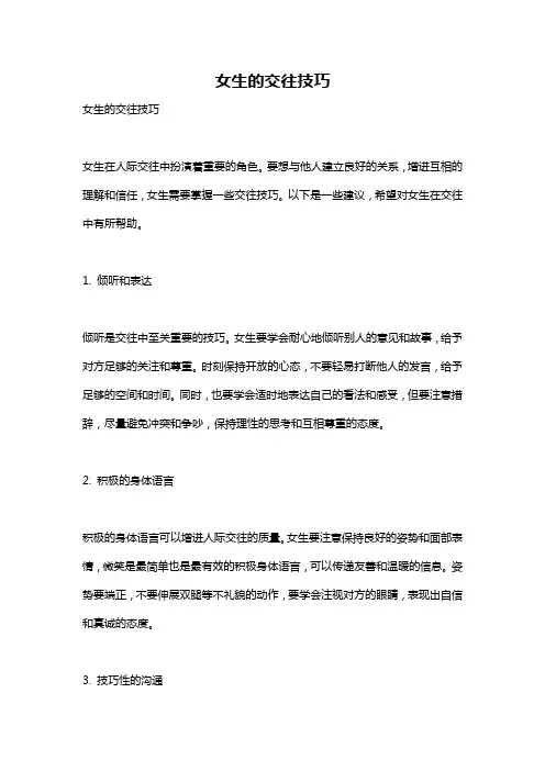 2. 培养良好的沟通技巧:良好的沟通技巧能够帮助女性与人交流更加顺畅并且中国人比较重视关系,建立起更加亲近的关系。