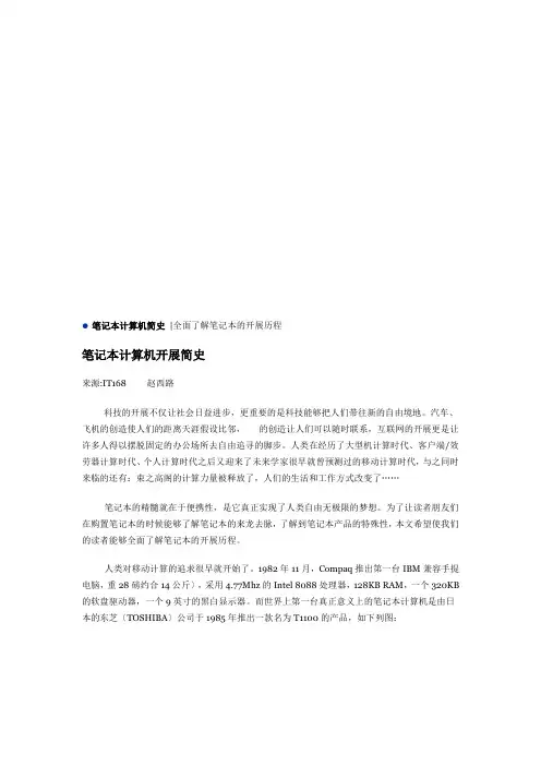 ●笔记本计算机简史|全面了解笔记本的开展历程笔记本计算机开展简史来源:IT168赵西路科技的开展不仅让社会日益进步,更重要的是科技能够把人们带往新的自由境地。