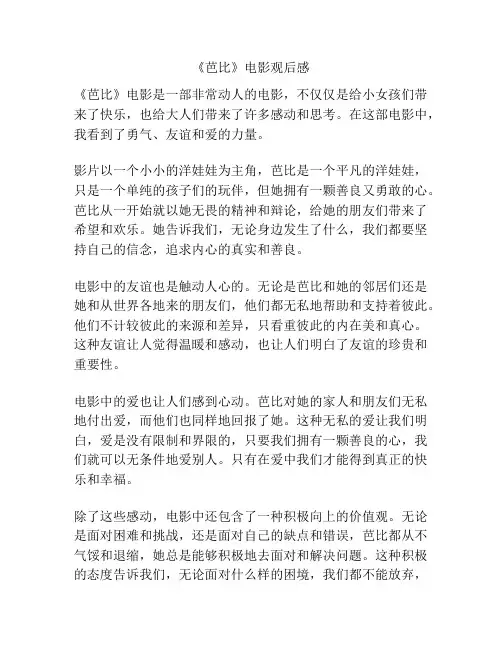 芭比电影的观后感《芭比电影》是一部美国动画电影,根据芭比娃娃系列衍生出来的系列电影之一。