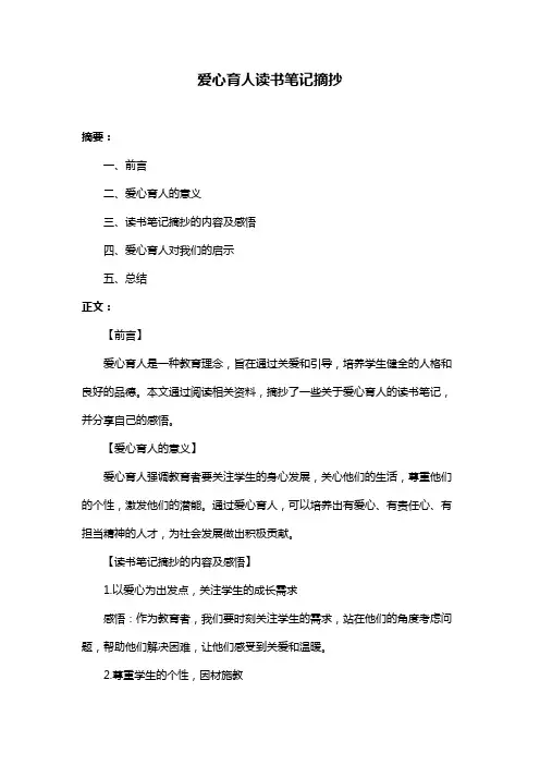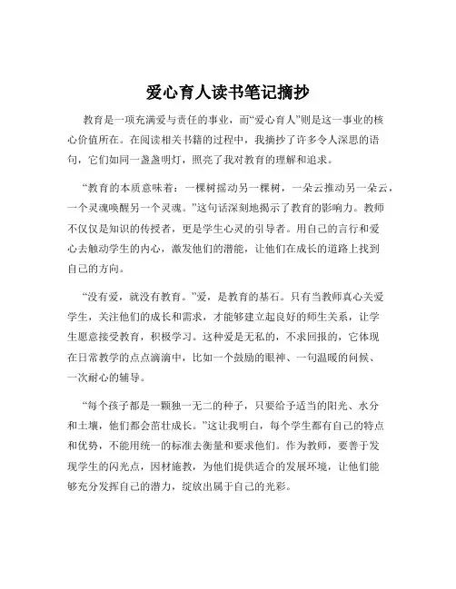 爱心育人读书笔记摘抄教育是一项充满爱与责任的事业,而“爱心育人”更是其中的核心理念。