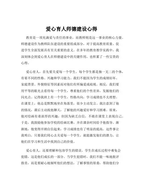 爱心育人师德建设心得教育是一项伟大而神圣的事业,教师则是这项事业的灵魂工程师。