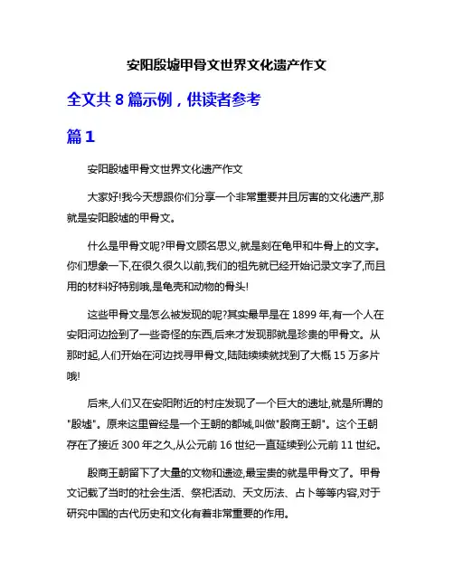 汉字甲骨文作文篇一汉字甲骨文作文嘿,你知道汉字甲骨文吗?也许你知道,也许你不知道,反正我觉得这玩意儿可太神奇啦!甲骨文,那可是咱们老祖宗留下来的宝贝。