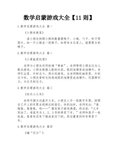 下⾯是店铺为⼤家收集的数学游戏⼤全,欢迎阅读,希望⼤家能够喜欢。