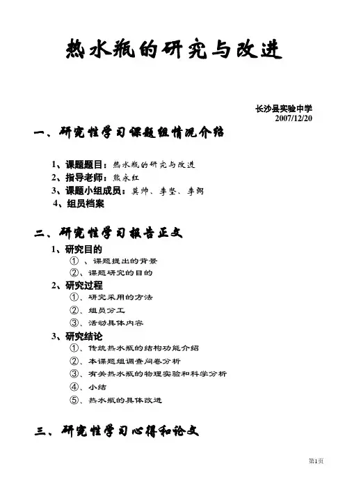 七、实验心得1. 通过本次实验,我对电热水壶的工作原理和构造有了更深入的了解。