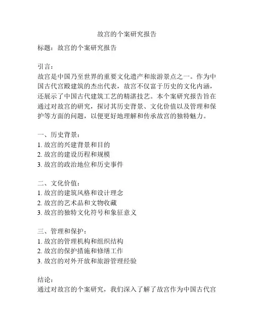 二、活动目标1. 让学生了解故宫的历史背景、建筑特点和文化内涵;2. 培养学生热爱祖国、热爱传统文化的情感;3. 提高学生的团队协作能力和实践能力;4. 增强学生的文化自信和民族自豪感。