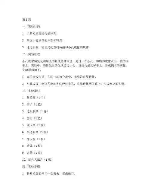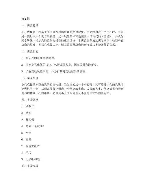 第1篇一、实验背景小孔成像是一种基于光的直线传播原理的物理现象。