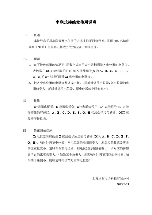 以下几点应该注意:•(1)请不要用力过度旋转电位器。