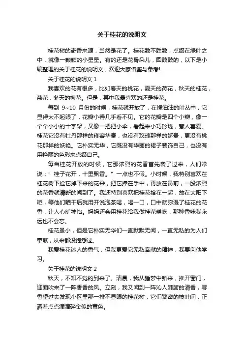 桂花说明文5篇第一篇:桂花说明文桂花飘香秋天到了,正是丹桂飘香的季节。