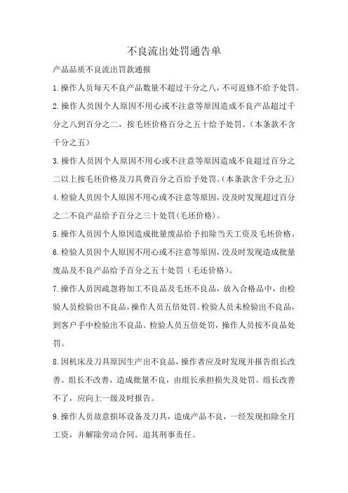 产品品质不良流出罚款通报