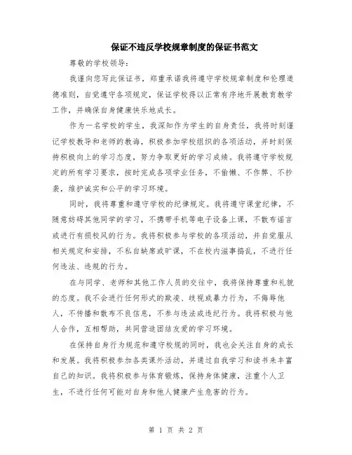 保证不违反学校规章制度的保证书尊敬的学校领导:您好!我是您学校的一名学生,我非常重视并尊重学校的规章制度。