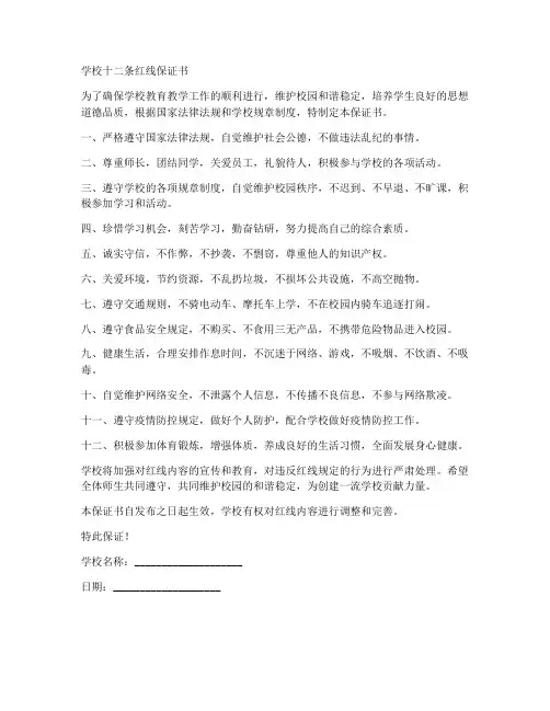 学校各项规章制度保证书学校是一个教育和培养学生的地方,为了保障学习环境的稳定和有序,促进教育教学工作的开展和学生成长健康,制定了一系列的规章制度。