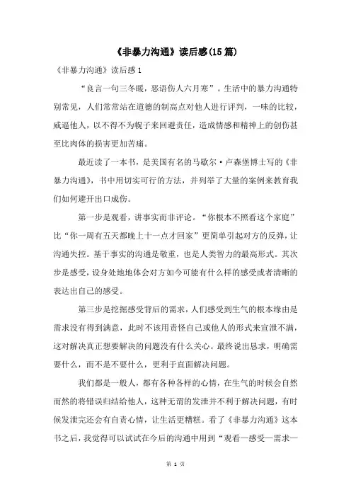 《非暴力沟通》读后感(集合15篇)《非暴力沟通》读后感1正在学习非暴力沟通,给大家分享下目前所感。