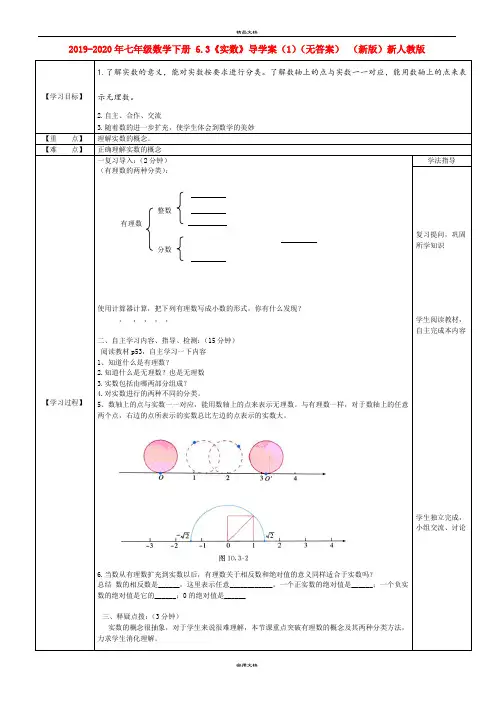 2019-2020年七年级数学下册 6.3《实数》导学案(1)(无答案)(新版)新人教版【学习目标】1.了解实数的意义,能对实数按要求进行分类。