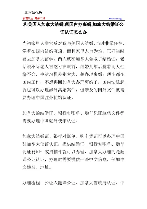 加拿大结婚证公证认证办理的相关事宜如下。