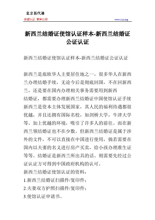 新西兰结婚证使馆认证的资料: