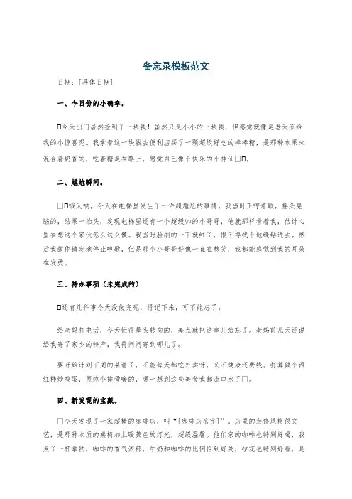 日常备忘录的格式可以根据个人喜好和需求进行调整,但通常包括以下部分: