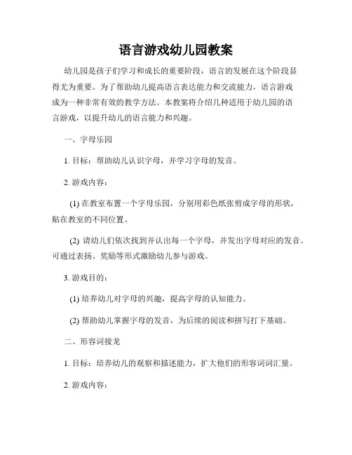 语言游戏幼儿园教案幼儿园是孩子们学习和成长的重要阶段,语言的发展在这个阶段显得尤为重要。