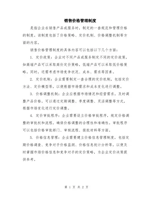 是指企业在销售产品或服务时,制定的一套规范和管理价格的制度。
