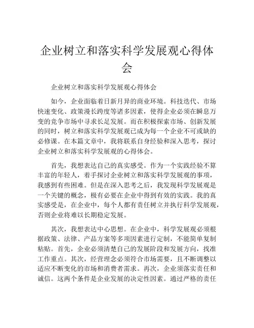 企业树立和落实科学发展观心得体会企业树立和落实科学发展观心得体会如今,企业面临着日新月异的商业环境。