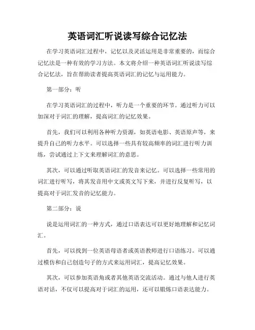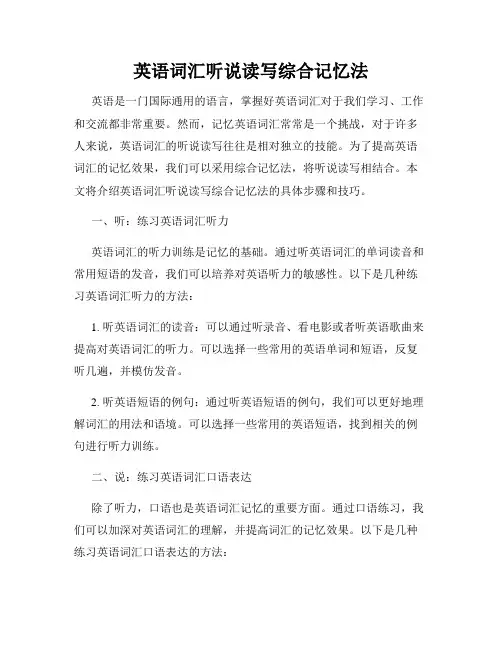 英语词汇听说读写综合记忆法英语是一门国际通用的语言,掌握好英语词汇对于我们学习、工作和交流都非常重要。