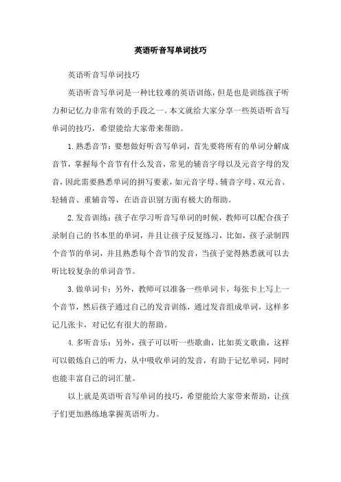 1.英语听力技巧听力是学习英语的重要组成部分。