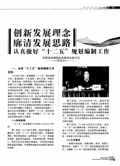 在“十二五”规划的制定过程中,乐际书记和正永省长主持召开了多次会议,对“十二五”规划《建议》和“十二五”规划《纲要》的起草制定作出了很多战略性的思考,提出了很多重要的方向性指导意见,比如,对我省“十二五”的发展提出要以科学发展、富民强省为主题;要求研究如何抓住机遇大力发展水利,破解水资源制约的问题;如何抓住国家西部大开发的战略机遇问题。