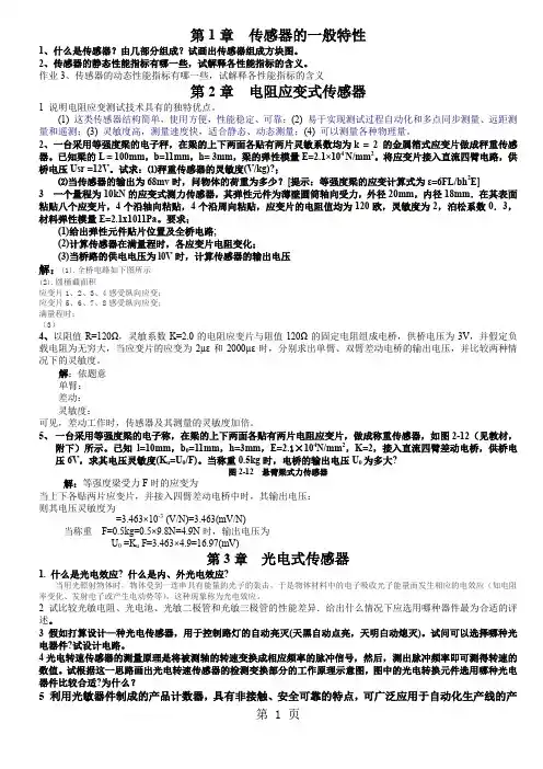 传感器技术课后习题答案传感器技术课后习题答案在传感器技术的学习中,习题是帮助我们巩固知识、检验理解程度的重要方式。