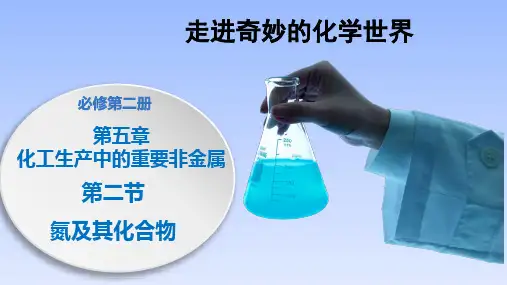 (2)类型:氮的固定⎩⎪⎪⎨⎪⎪⎧人工固氮如工业合成氨:N 2+3H 2催化剂高温、高压2NH 3自然固氮如雷雨天产生NO :N 2+O 2放电2NO生物固氮如豆科植物的根瘤菌能够将空气中的氮转化为含氮化合物而促进自身生长化学模拟生物固氮:利用化学方法模拟固氮 酶的作用,在温和条件下将氮转变为氨4.氮气的应用①焊接金属时作保护气; ②液氮可作冷冻剂;③重要的化工原料,用来制取化肥、炸药等。