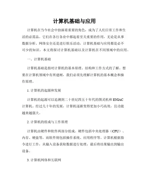 计算机基础与应用计算机在当今社会中扮演着重要的角色,成为了人们日常工作和生活的必需品。