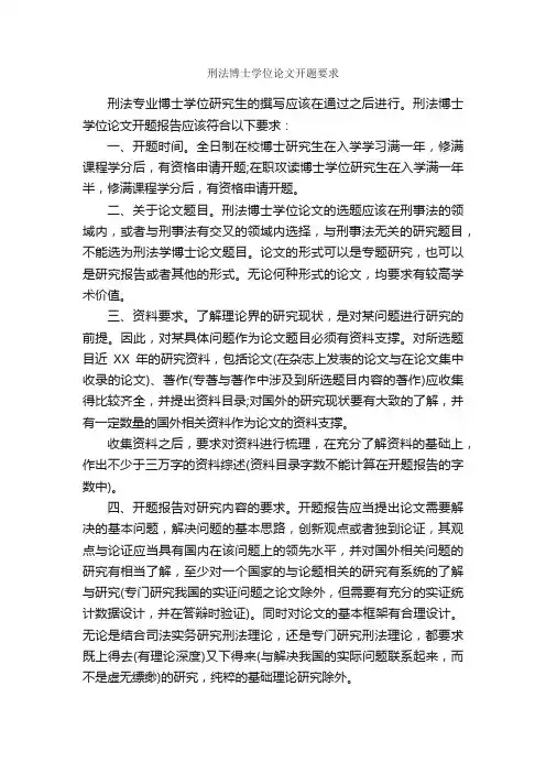 刑法博士学位论文开题要求刑法专业博士学位研究生的撰写应该在通过之后进行。
