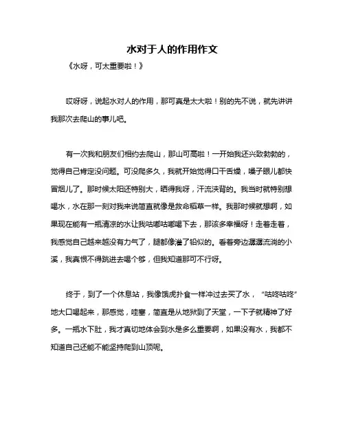 哎呀呀,说起水对人的作用,那可真是太大啦!别的先不说,就先讲讲我那次去爬山的事儿吧。