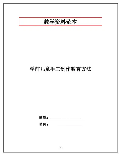 二、指导方法与策略在进行学前教育中的手工制作活动时,幼儿教师可以采取以下方法与策略,以提升活动的效果和质量:1. 按照儿童发展阶段设置活动内容:学前教育阶段的儿童年龄较小,认知水平和动手能力各有不同。