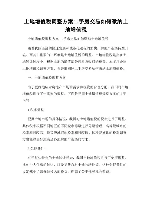 土地增值税调整方案二手房交易如何缴纳土地增值税土地增值税调整方案二手房交易如何缴纳土地增值税随着我国经济的快速发展和城市化进程的加快,房地产市场持续升温。