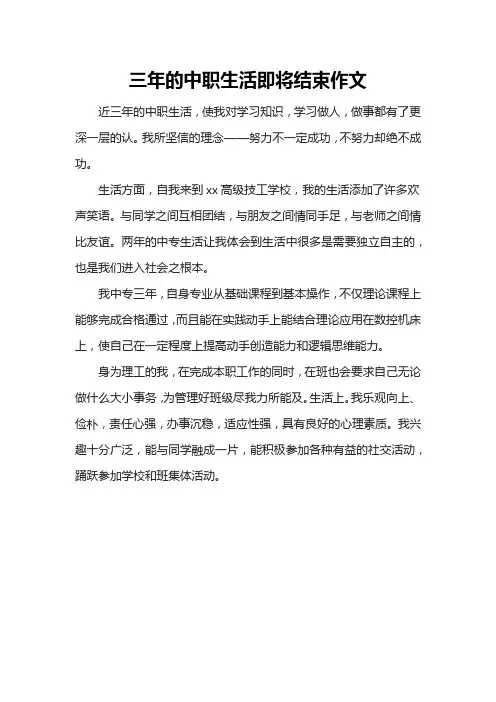 我的平凡中职生活作文《我的平凡中职生活》当我踏入中职校园的那一刻,我知道我的人生将迎来一个新的阶段。