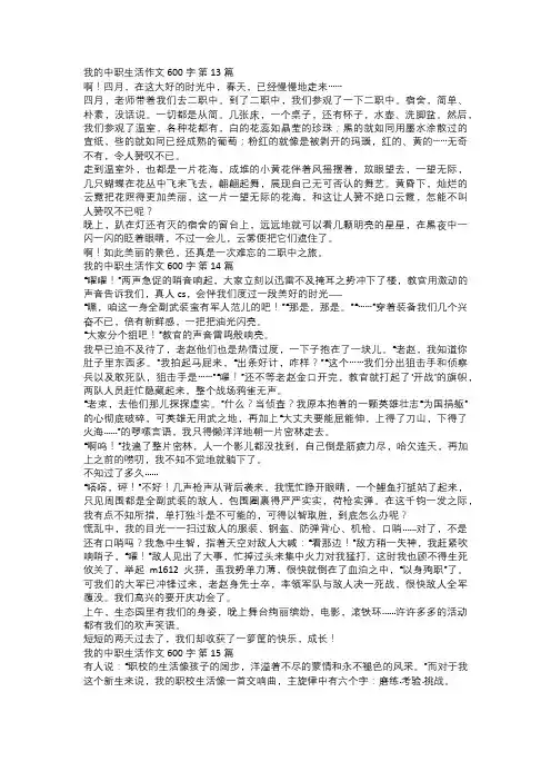 关于中职学生的作文篇一《中职生活中的小确幸》中职生活,在很多人眼里可能觉得普普通通,甚至有点“没前途”的感觉。
