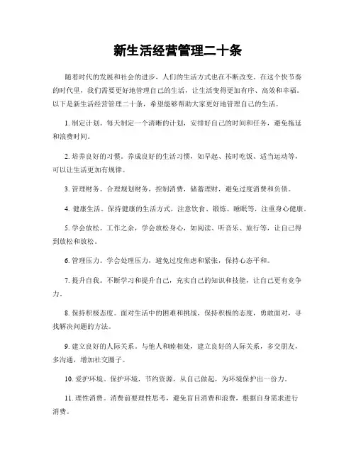 以下是新生活经营管理二十条,希望能够帮助大家更好地管理自己的生活。