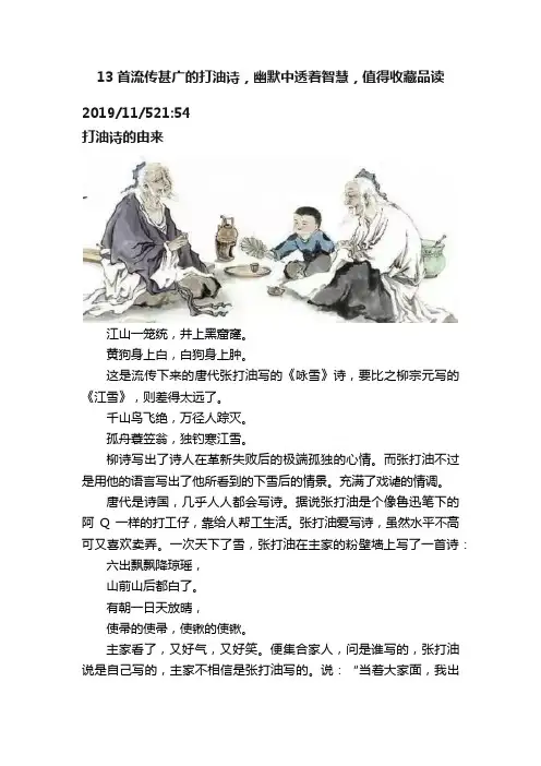 【导语】打油诗虽然不太讲究格律,也不注重对偶和平仄,但⼀定会是押韵,亦通常是五字句或七字句组成。