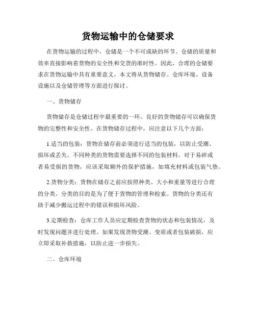 货物运输中的仓储要求在货物运输的过程中,仓储是一个不可或缺的环节。